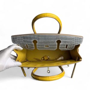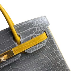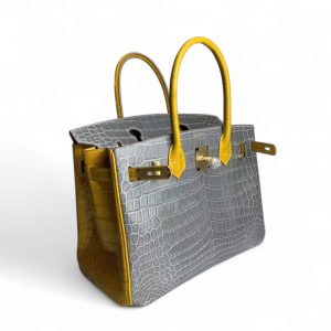 Túi xách Hermes Birkin da cá sấu phối xám vàng size 30 – HBXV024S là dòng like auth cao cấp hermes, túi chuẩn form, giống 99% túi hermes chính hãng. Túi được làm từ da cá sấu cao cấp, gia công tỉ mỉ từng chi tiết, phụ kiện túi được làm từ hợp kim không gỉ cao cấp. Túi đầy đủ full bill box.