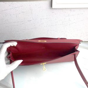 Giữ nguyên tất cả các đặc điểm của túi Kelly, Kelly Cut là một phiên bản thu nhỏ của nó. Nhỏ gọn, Túi được đổi phần thân hình thang thường thành hình chữ nhật, và được giới thiệu ở đây với màu đỏ đô sang trọng và mạnh mẽ.