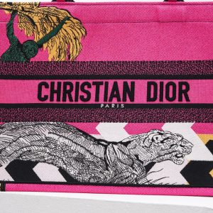 Được giới thiệu bởi Maria Grazia Chiuri, Giám đốc Sáng tạo của Christian Dior, Dior Book Tote đã trở thành một yếu tố quan trọng của thẩm mỹ Dior. Được thiết kế để chứa đựng tất cả những vật dụng cần thiết hàng ngày, kiểu áo này được thêu đầy đủ với họa tiết con sư tử dũng mãnh, lấy cảm hứng từ kho lưu trữ và vũ trụ đầy màu sắc của bộ sưu tập. Được tô điểm bằng chữ ký ‘CHRISTIAN DIOR PARIS’ ở mặt trước, chiếc túi trung bình thể hiện dấu ấn savoir-faire đặc trưng của Nhà và có thể được xách tay hoặc đeo qua vai.