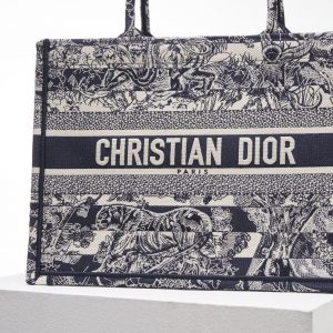 Được giới thiệu bởi Maria Grazia Chiuri, Giám đốc Sáng tạo của Christian Dior, Dior Book Tote đã trở thành một yếu tố quan trọng của thẩm mỹ Dior. Được thiết kế để chứa tất cả các vật dụng cần thiết hàng ngày, kiểu áo này được thêu hoàn toàn bằng họa tiết Toile de Jouy Reverse màu xanh lam, một biến thể của họa tiết nổi bật của Ngôi nhà với cách chơi màu sắc đảo ngược. Được tô điểm bằng chữ ký ‘CHRISTIAN DIOR PARIS’ ở mặt trước, chiếc túi trung bình thể hiện dấu ấn savoir-faire đặc trưng của Nhà và có thể được xách tay hoặc đeo qua vai.
