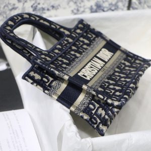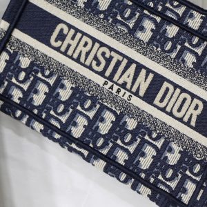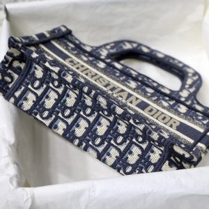 Túi Dior Book Tote như trong tưởng tượng của Maria Grazia Chiuri, đã trở thành một món đồ thiết yếu của tinh thần Dior. Hình được thêu hoàn toàn bằng họa tiết Toile de Jouy màu xanh lam đặc trưng của Ngôi nhà. Một ví dụ điển hình của Dior savoir-faire, chiếc túi nhỏ có thể được xách bằng tay và có thể kết hợp với các sáng tạo khác của Toile de Jouy trong bộ sưu tập.