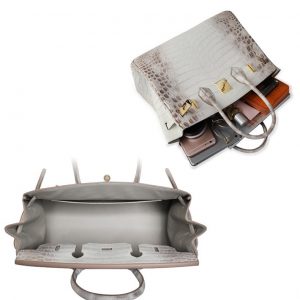 Túi xách nữ da cá sấu Himalaya là dòng túi xách cao cấp của Olagood, túi được làm từ da cá sấu sông Nile nhập khẩu và được thuộc theo màu sắc Himalaya. Túi được làm thủ công rất sắc nét, đường may tỉ mĩ chi tiết, thiết kế chuẩn form, rất sang trọng. Túi phù hợp với nhiều độ tuổi từ 30 đến 55, phù hợp với những buổi dạ tiệc, liên hoan, gặp gỡ bạn bè khách hàng…