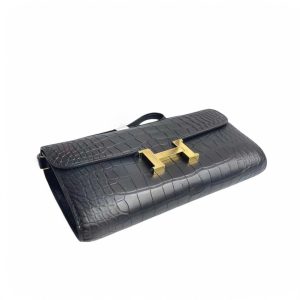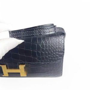 Ví dài Hermes Constance được làm bằng da cá sấu mỹ, may thủ công với chỉ sáp rất tỉ mỉ và hoàn hảo. Ví với 12 khe cắm thẻ tín dụng, 2 ngăn lớn, 1 ngăn có khóa kéo, túi bên ngoài và nắp đóng ‘H’ được mạ palladium.